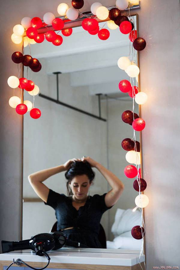 Bạn có thể sử dụng nhiều màu đèn khác nhau khi kết hợp với tường trắng hoặc căn cứ theo bố cục nội thất tổng thể của căn phòng. Một cách dễ dàng nhưng hiệu quả đó là thắp đèn ở những góc tối của phòng. Trong phòng ngủ và hành lang, đèn cotton ball này có thể thay thế cho những chiếc đèn truyền thống để mang lại cảm giác mới lạ và thích thú cho không gian.